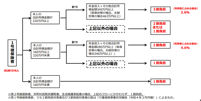 具体的には、65歳以上(第1号被保険者)の場合、合計所得金額が160万円以上の方は所得や世帯状況に応じて負担割合が上がります。単身世帯で年金収入とその他の合計所得が280万円以上、または2人以上の世帯で年金収入とその他の合計所得が346万円以上の方は2割負担となります。