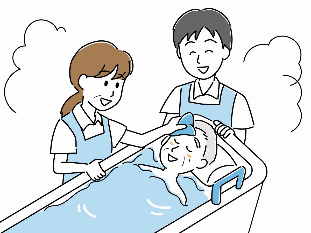 看護職員ができることは、バイタルチェック(血圧・脈拍・体温などの測定)や湿布の張り替え、軟膏の塗布など、健康状態の確認と入浴に関連する軽微な処置が中心です。一方、痰の吸引や摘便、褥瘡(じょくそう)のケアなど、入浴支援と関連のない医療行為はできません。