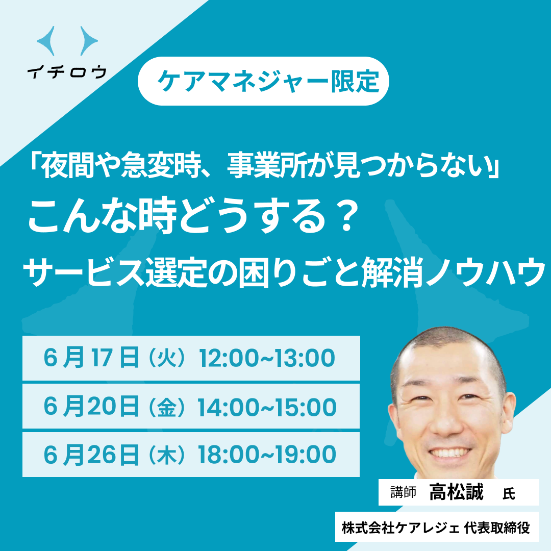 6月ケアマネジャー向けセミナー【こんな時どうする?サービス選定の困りごと解消ノウハウ】