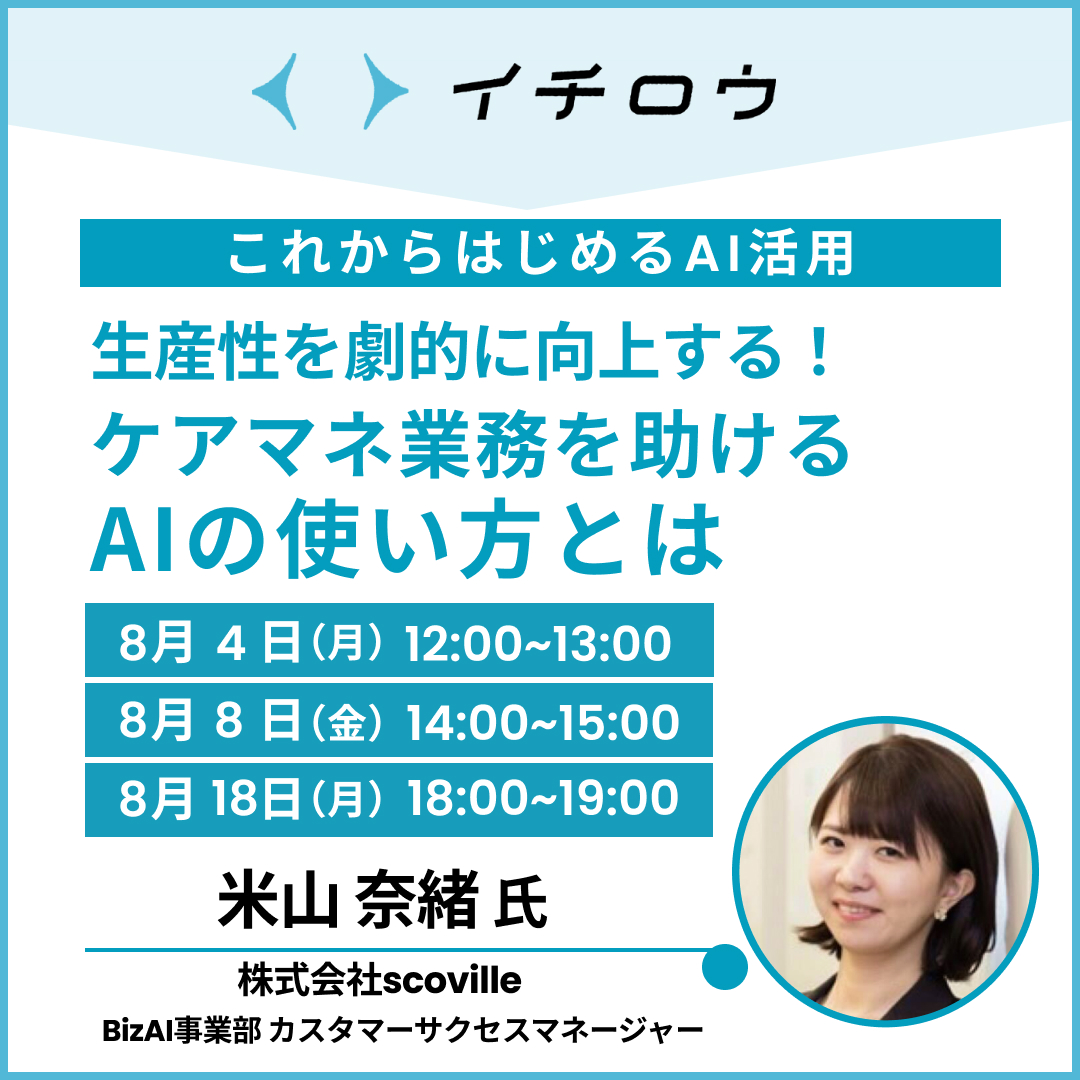 8月ケアマネジャー向けセミナー【生産性を劇的に向上する!ケアマネ業務を助けるAIの使い方とは】
