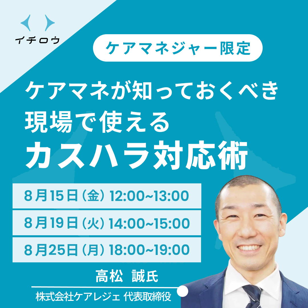 8月ケアマネジャー向けセミナー【ケアマネが知っておくべき 現場で使えるカスハラ対応術】
