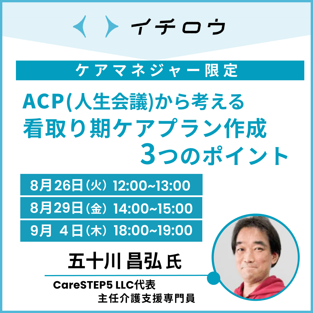 8月ケアマネジャー向けセミナー【ACP(人生会議)から考える 看取り期ケアプラン作成 3つのポイント】