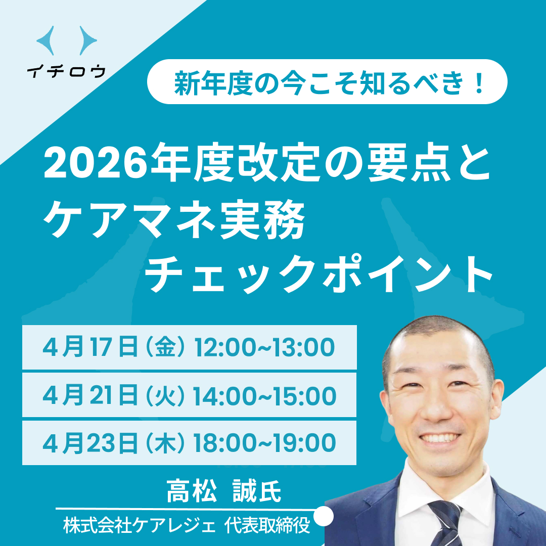 4月ケアマネジャー向けセミナー『新年度の今こそ知るべき! 2026年度改定の要点とケアマネ実務チェックポイント』